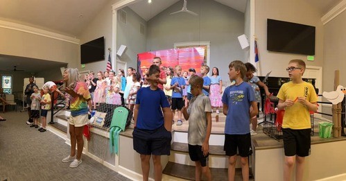 VBS is for children in PreK through 5th grade. Each year children learn stories from the Bible while they also enjoy crafts, music, food, worship and learn about missionaries. VBS is FREE!