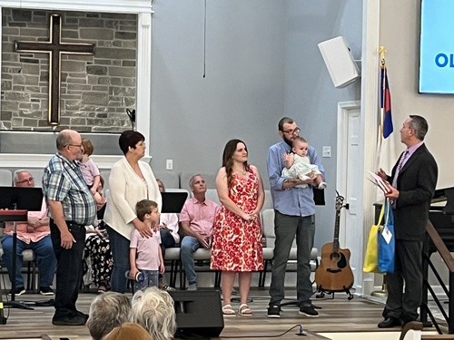Each May on the Sunday before Mother's Day, we have a child dedication service. The service is an opportunity for parents to dedicate their child to God. They also make a promise before God and the congregation to raise their child in a Christian home, and to teach him/her at an early age about Jesus and Christianity. The congregation also pledges to partner with parents to raise their child in a Christian environment. Children of any age can be dedicated, although parents often dedicate their child the May after their child's birth. If you would like to dedicate your child, please contact one of the pastors HERE.