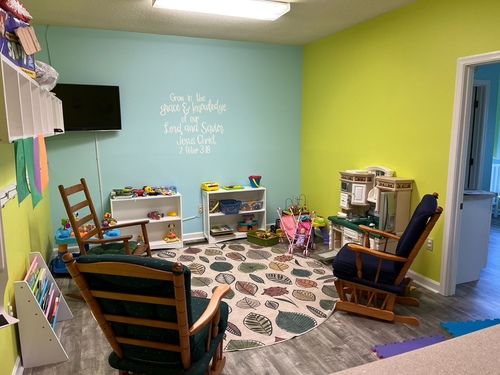 On Sundays for our 9 am and 11 am worship services and Sunday school we have child care for infants and toddlers in our nursery. There is care for preschool and kindergarten children during Sunday school and during the 11 am service. We have hired professionals and volunteers who give excellent care to your children so they learn from an early age that church is a fun and safe place to be. Also, adults can enjoy the worship service and Sunday school while their children learn about God in an enjoyable environment.